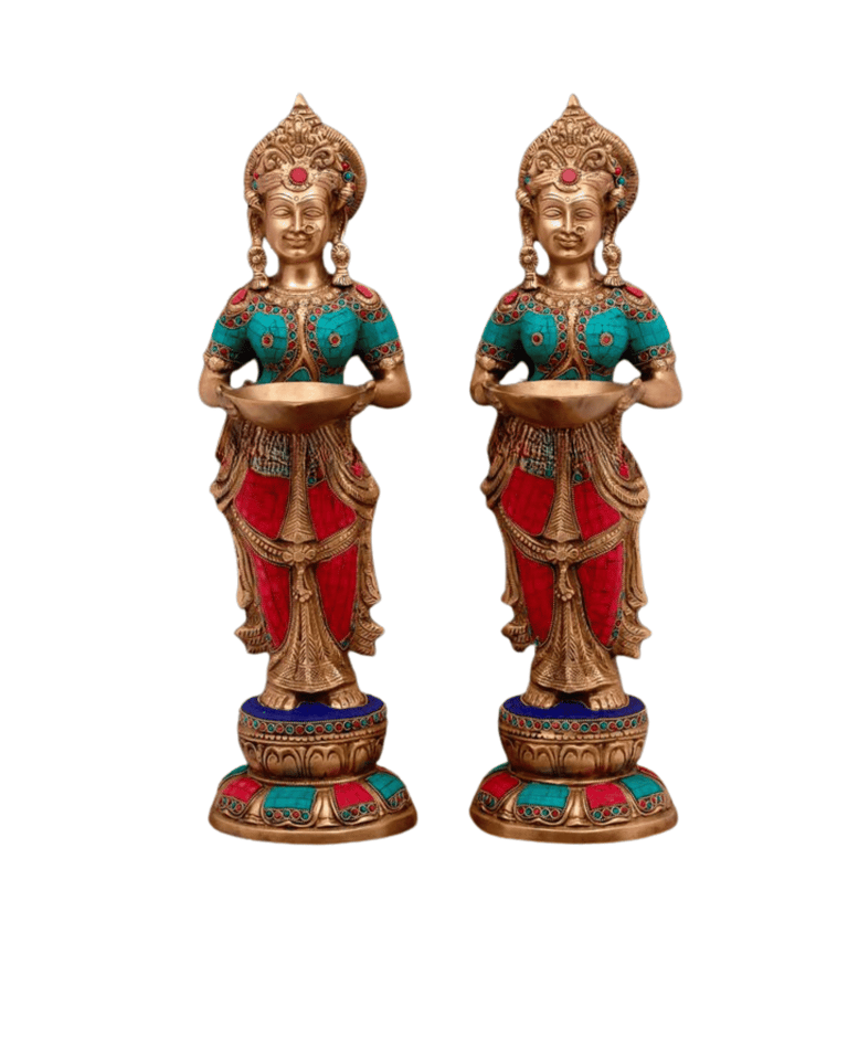Our online collection features a wide array of brass pooja items, including diyas, incense holders, pooja thalis, bells, lap, Swastik, kumkum box, manjira, ram mandir chowki more. Each item is crafted with the finest quality brass and infused with intricate detailing and craftsmanship, reflecting our commitment to excellence and spiritual reverence.
