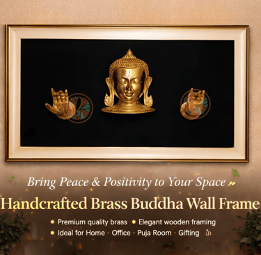 Bring peace, positivity, and timeless elegance into your space with our Brass Buddha Head With Hand Gestures Wall Hanging Frame — a premium handcrafted spiritual wall décor made by skilled artisans of Aligarh, the world-famous brass handicraft hub.