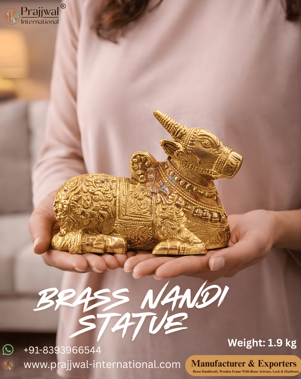 As a trusted manufacturer and exporter of Indian brass handicrafts, Prajjwal International ensures that every Brass Nandi Statue meets export-quality standards while retaining its traditional character.